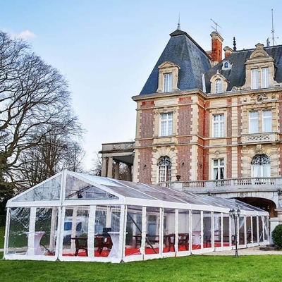 Grâce à la toile PVC transparente, la structure se fond dans le paysage et apporte une très belle luminosité naturelle à tous vos événements.